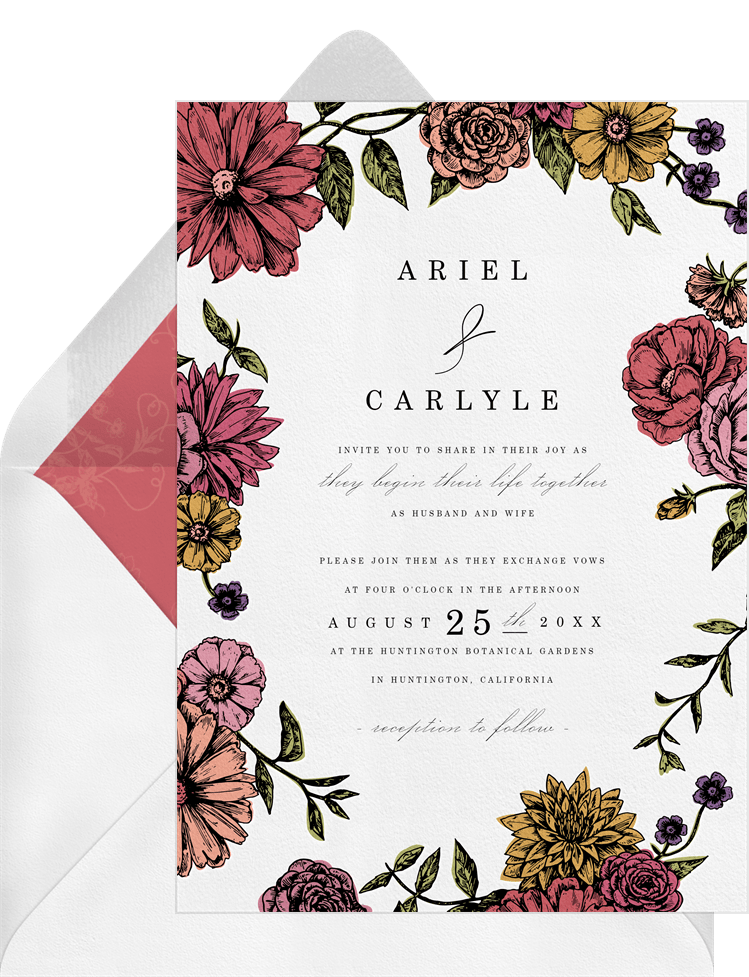 Romantic Floral Border Invitations In Red Greenvelope Com