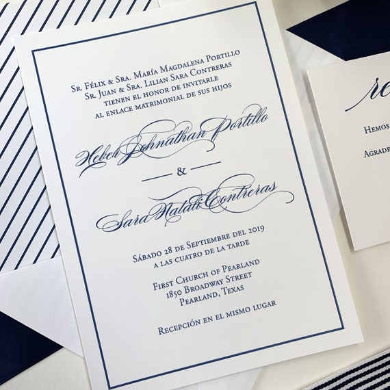 Navy Wedding Invite Spanish Wedding Invite Bilingual Etsy