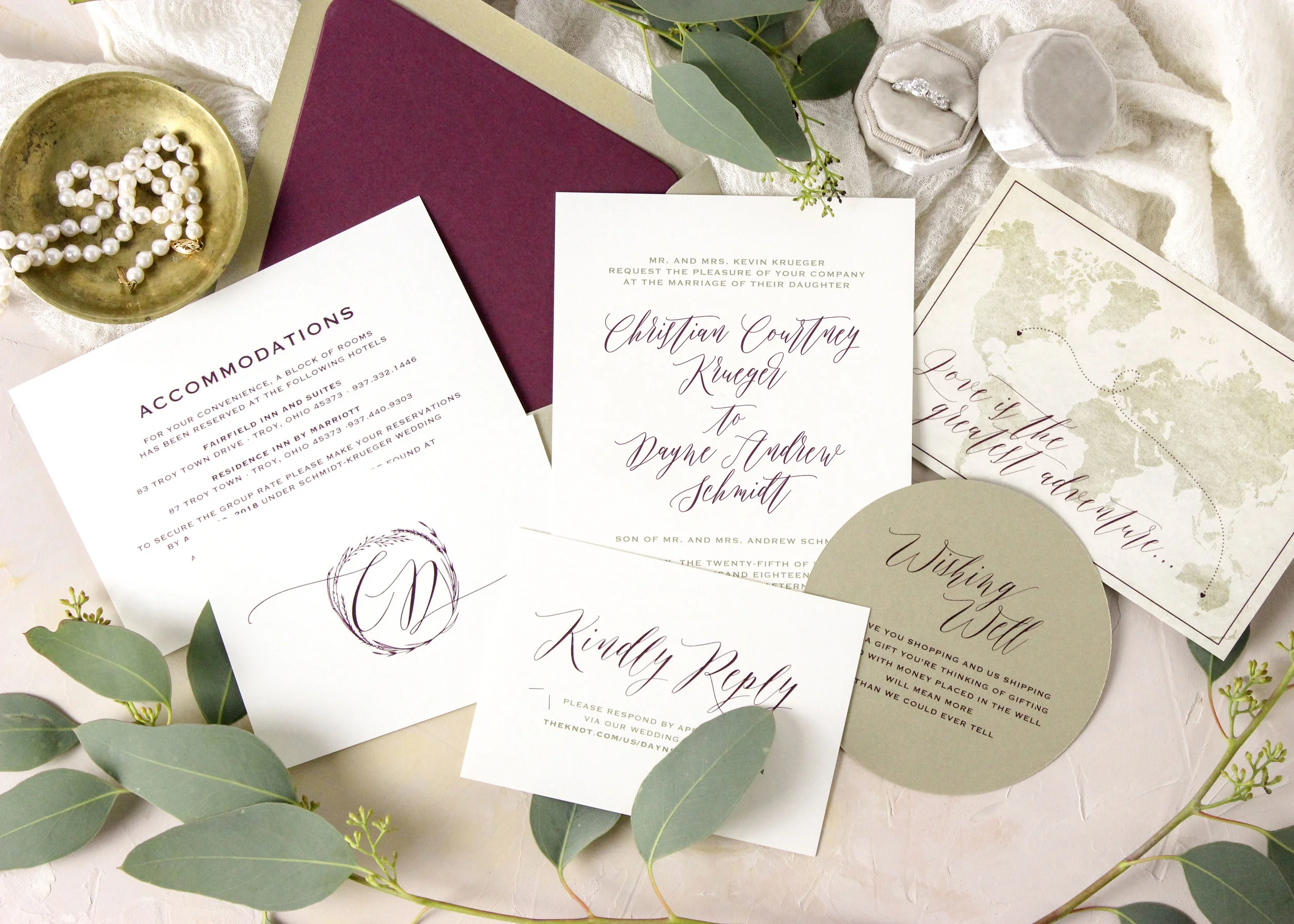 Christi Dayne Modern Burgundy Wedding Invitations With Custom