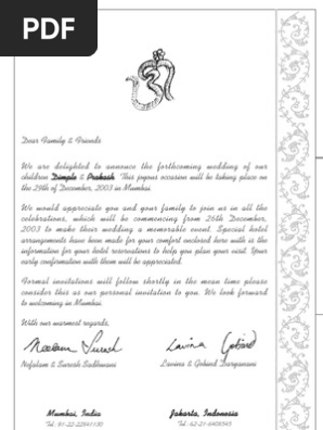 Invitation Letter To Attend The Marriage Ceremony In Hindi