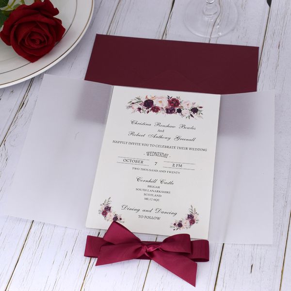Marsala Burgundy Flower Printing Wedding Invitation Kits With