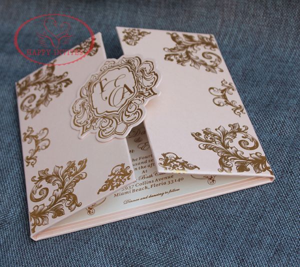 New 2019 Wedding Invitation Card Hollow Gold Glitter Invitations