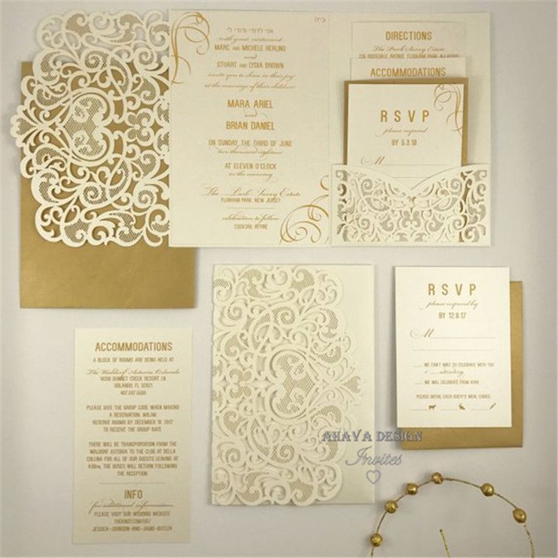 Laser Cut Pocket Wedding Invitation Kit Ivory Invite Vintage Swirl