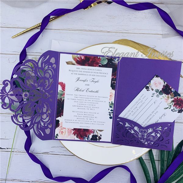 Plum Legant Laser Cut Ser Cut Wedding Invitation Cards Greeting