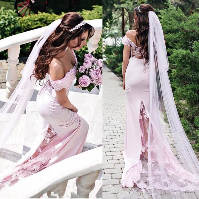 Baby Pink Wedding Dresses 2019 Romantic Off Shoulder Handmade