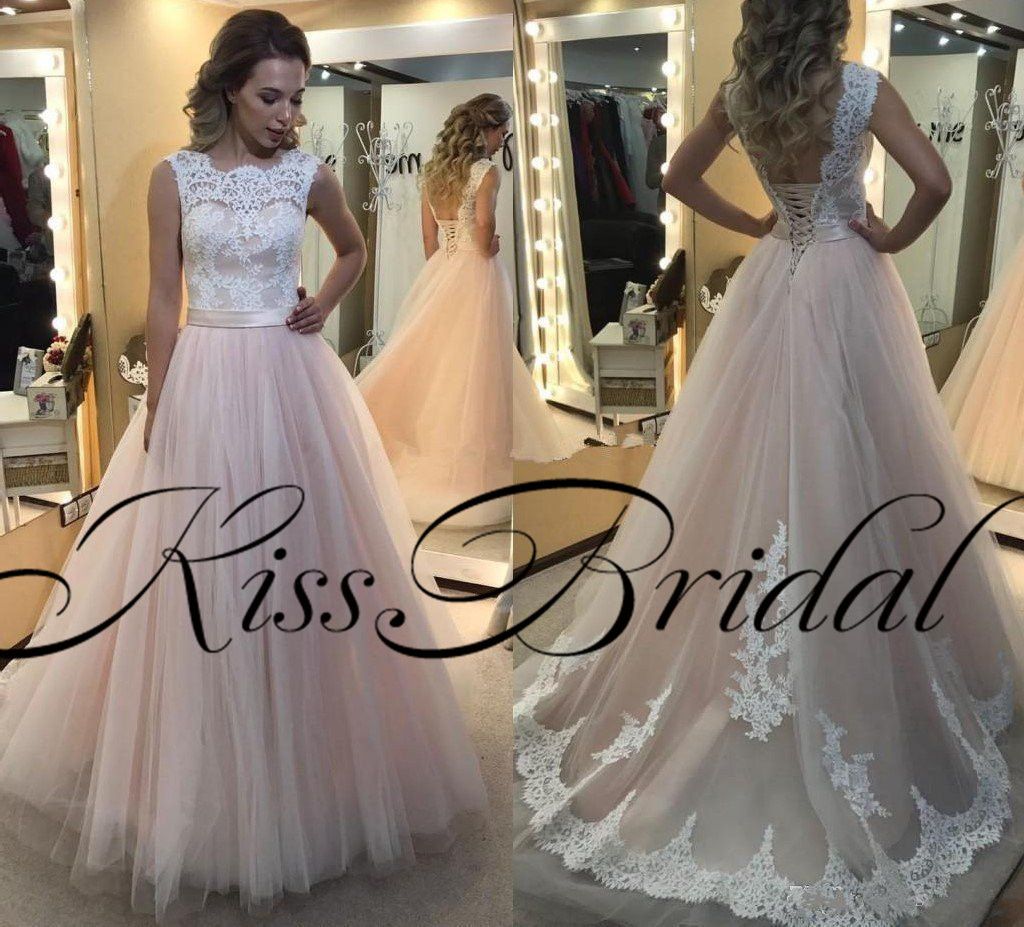 Discount Baby Pink A Line Lace Wedding Dresses Simple Formal