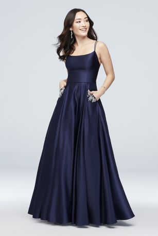 Jewel Pocket Strappy Satin Ball Gown David S Bridal