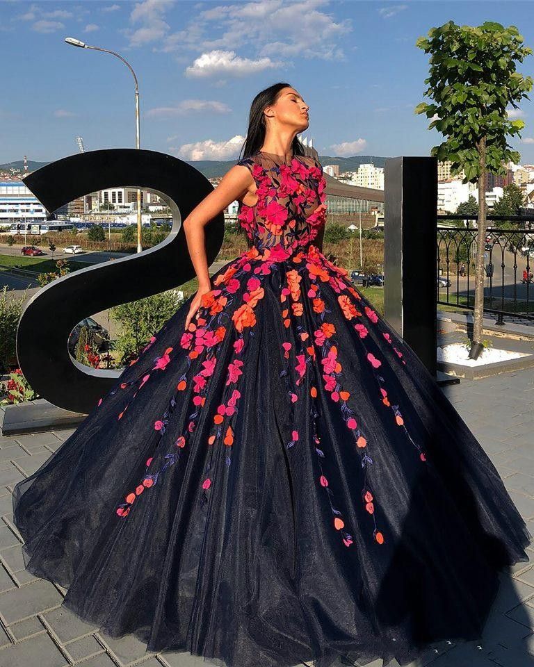 2020 Gorgeous Ball Gown Wedding Dresses 3d Floral Appliques Navy