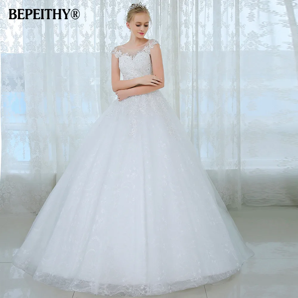 Plus Size White Princess Lace Ball Gown Wedding Dresses Bridal