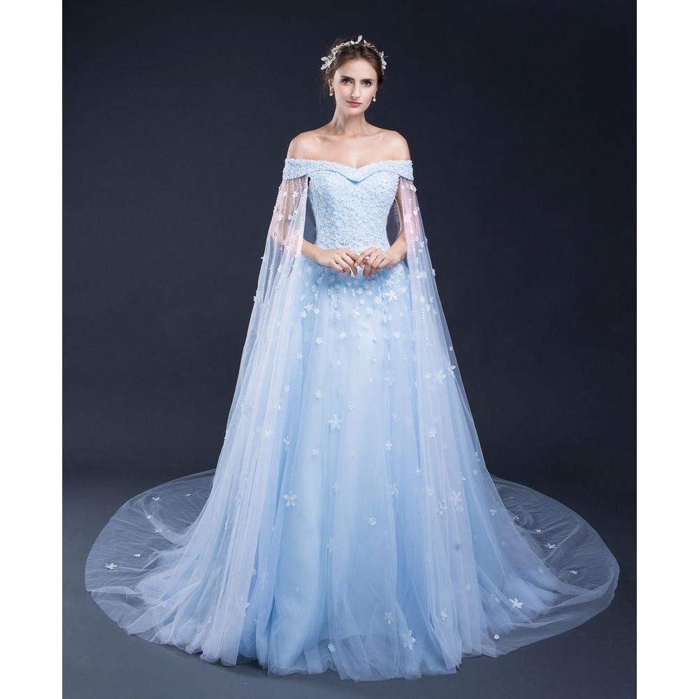 Ice Blue Ball Gown Formal Dress With Off Shoulder Straps In 2020