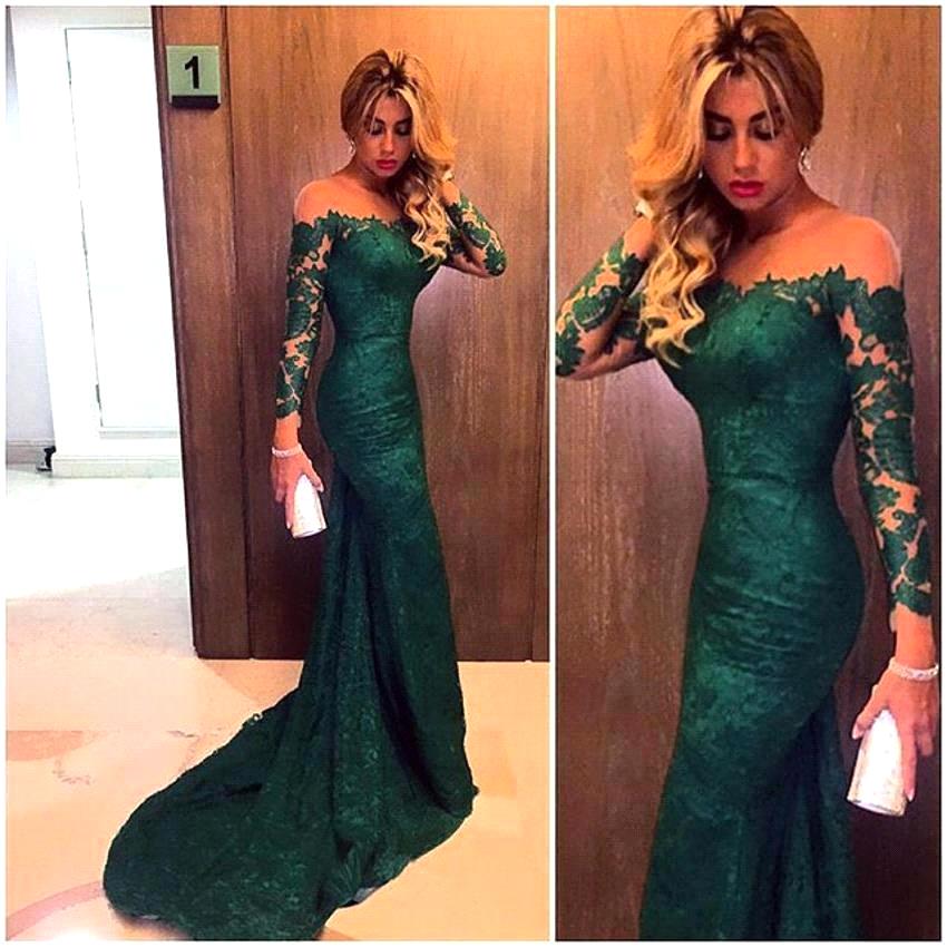 Elegant Green Lace Mermaid Long Sleeve Prom Dresses 2016 Sexy