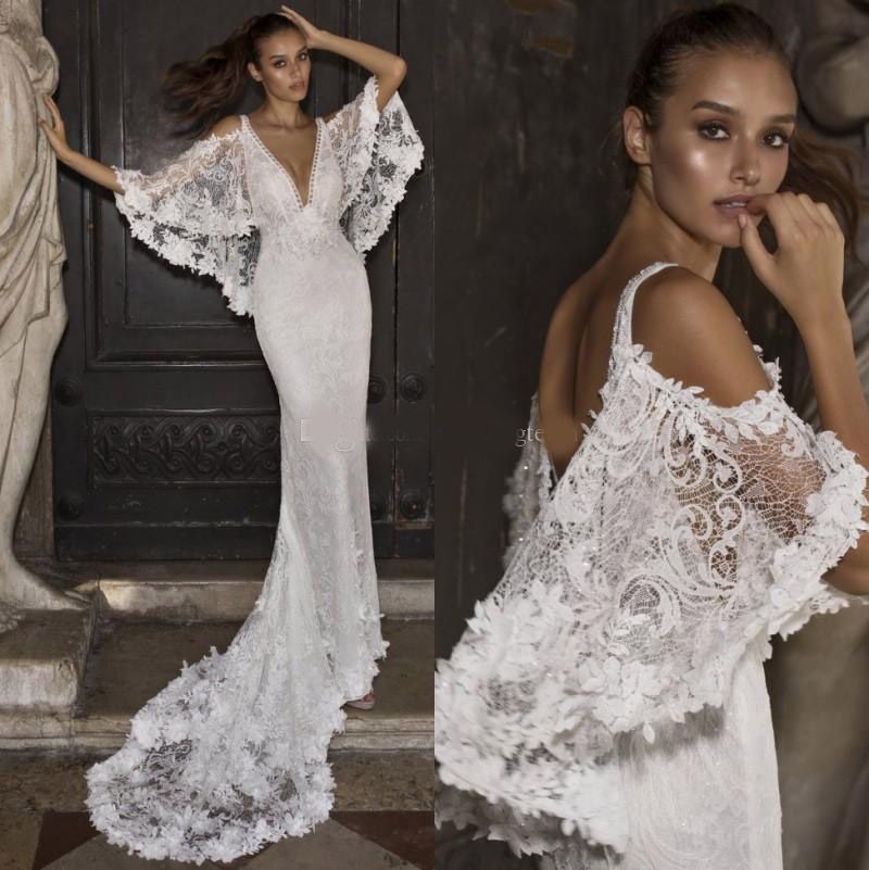 Stunning Mermaid Lace Beach Backless Wedding Dresses With Cape