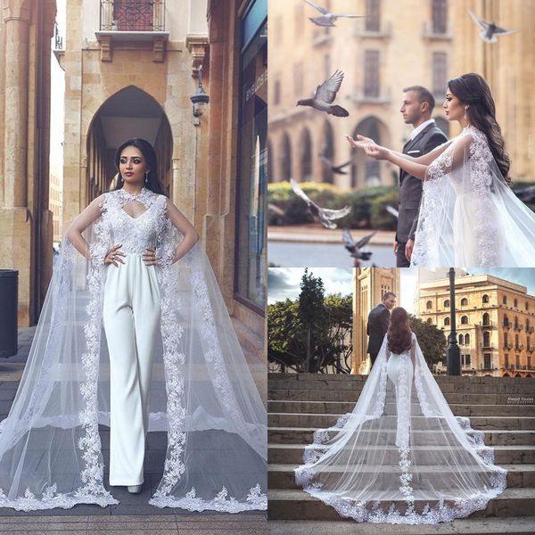 Discount 2019 Elegant White Jumpsuit Wedding Dresses V Neck Lace