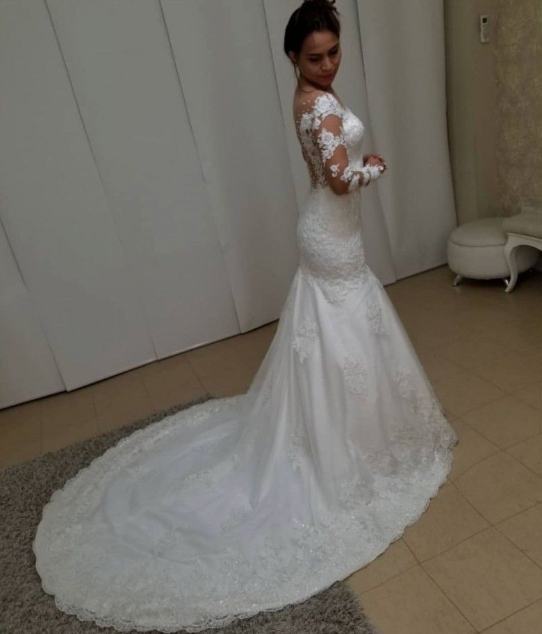 Long Sleeves Floor Length Applique Lace Sexy Wedding Dresses