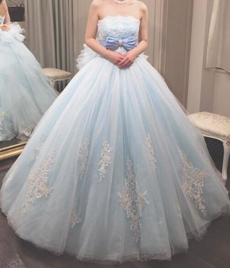 Light Blue Bridal Ball Gown With Applique A Line Wedding Dress