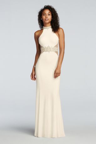 High Neck Halter Beaded Illusion Waist Prom Dress David S Bridal