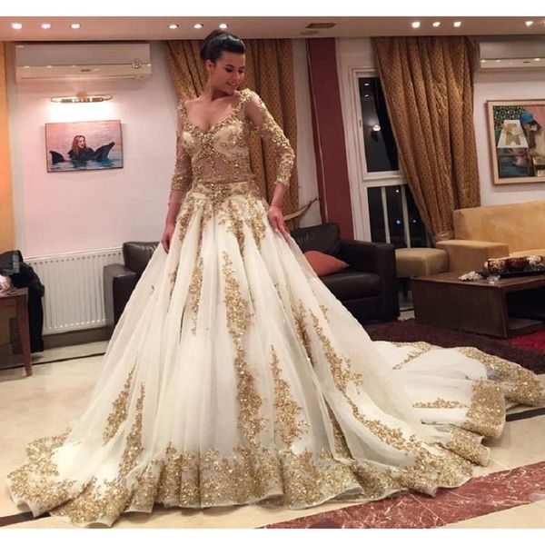 Gold Wedding Dresses Ball Gown Long Sleeve Appliques Elegant India