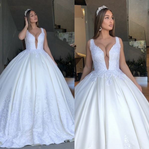 2020 Sexy Ball Gown Wedding Dresses Deep V Neck Appliqued