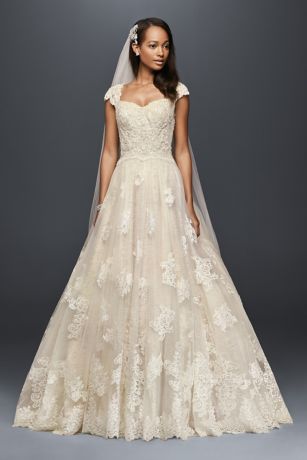 Cap Sleeve Wedding Ball Gown With Lace Appliques David S Bridal