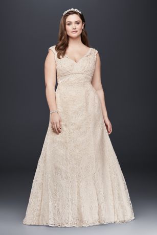 Oleg Cassini Plus Size Beaded Lace Wedding Dress David S Bridal
