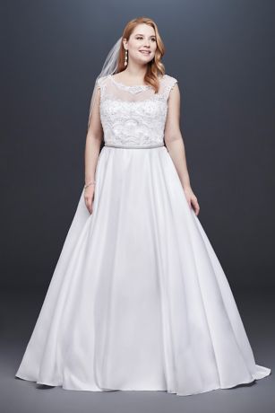 Satin Cap Sleeve Plus Size Ball Gown Wedding Dress David S Bridal