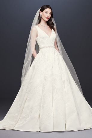 Satin Ball Gown Wedding Dress With Plunging V Neck David S Bridal