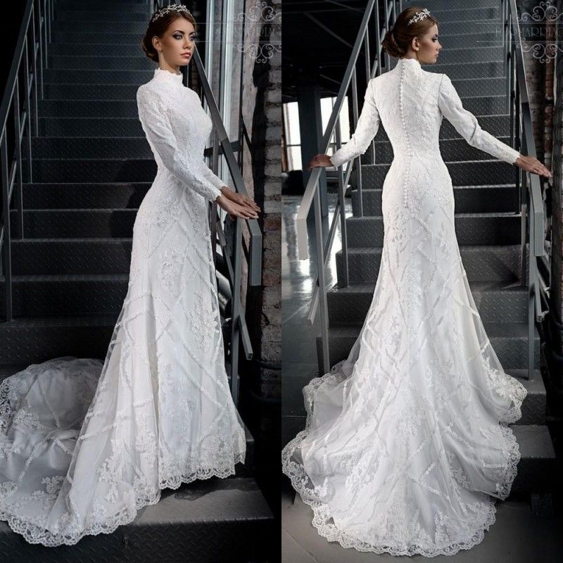 Muslim Wedding Dresses Modest Design High Neck Long Sleeve Lace