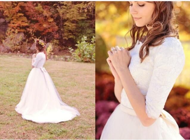 2019 A Line Lace Tulle Modest Wedding Dresses With 3 4 Sleeves
