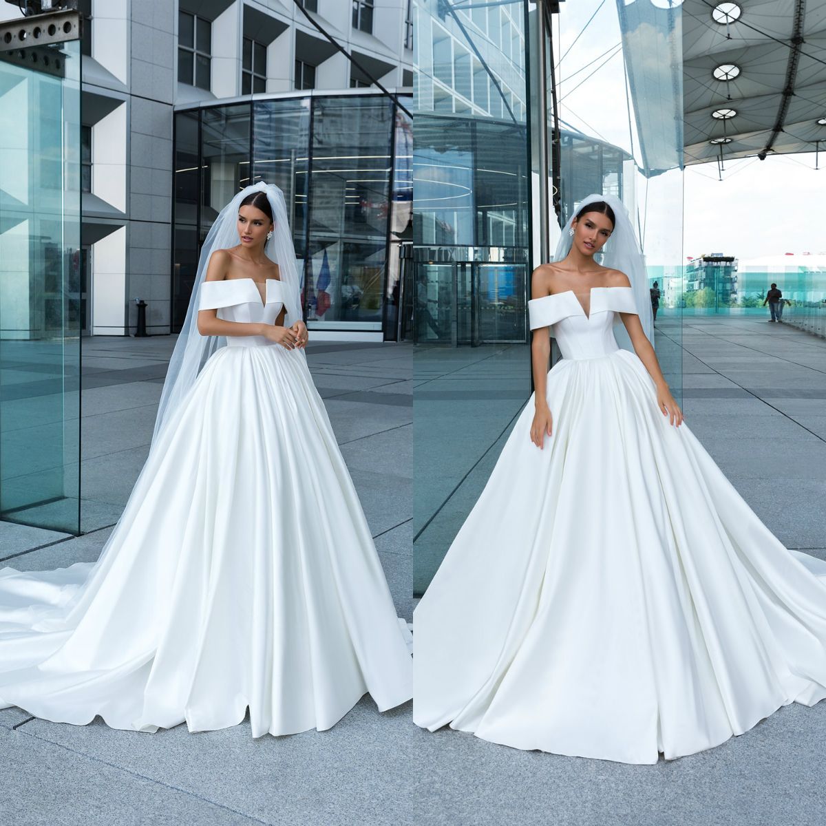 Discount 2019 Newest A Line Satin Wedding Dresses Off Shoulder
