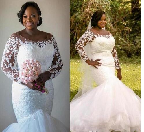 Dreamdress Women S Mermaid Wedding Dresses Plus Size Long Sleeve