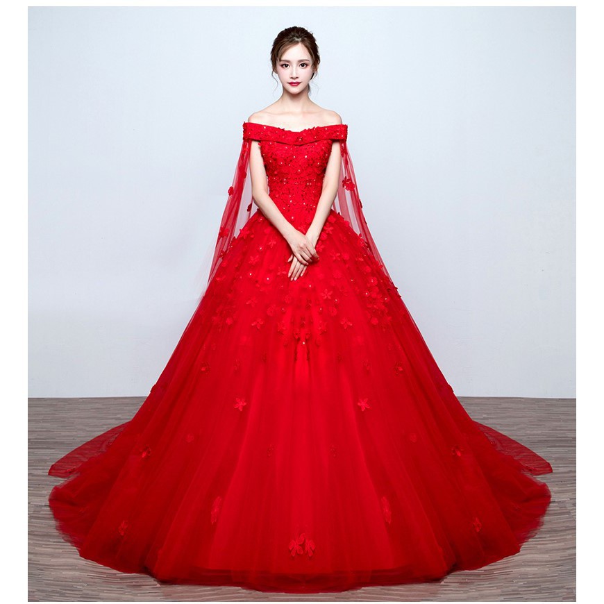 S 2xl Off Shoulder Red Floral Puffy Bridal Pre Wedding Photoshoot