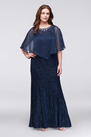 Plus Size Long Lace Dress With Beaded Capelet David S Bridal