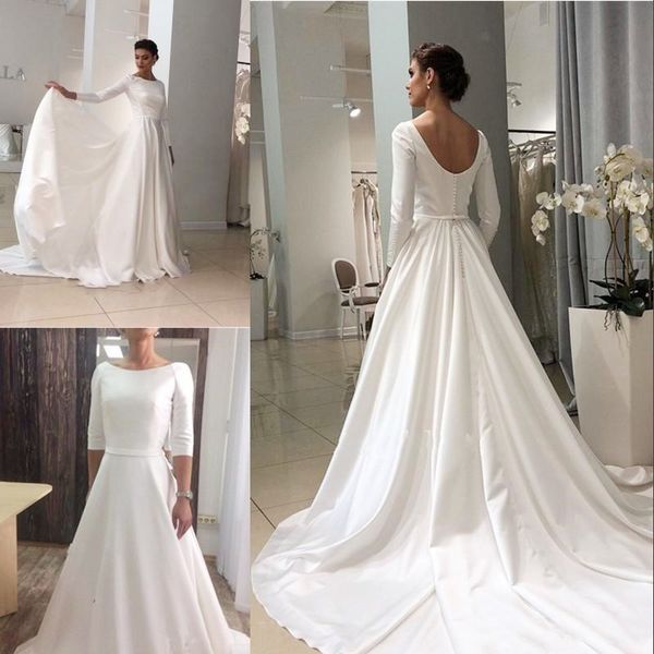Elegant A Line Long Sleeves Satin Long Simple 2020 Wedding Dresses