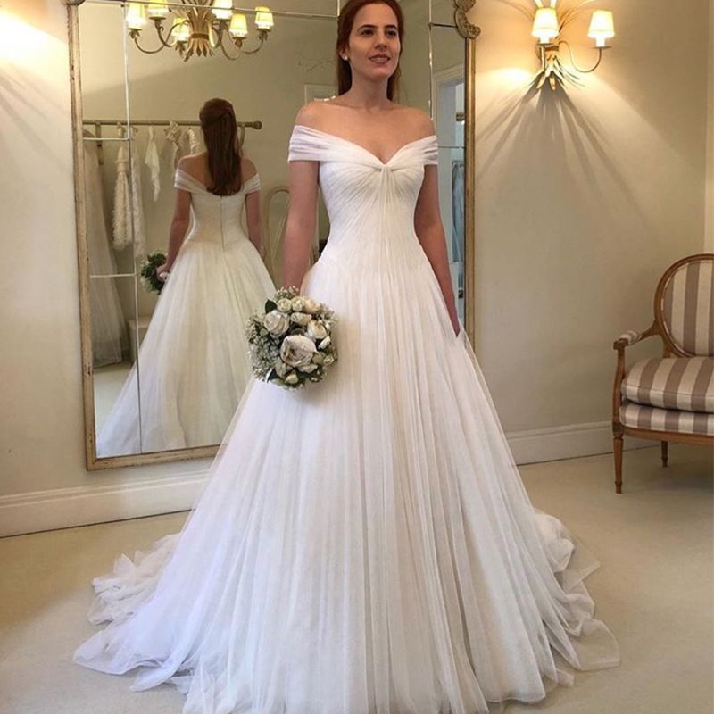Discount 2019 New Simple V Neck Wedding Dresses Off The Shoulder