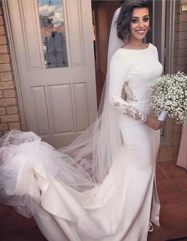 Long Simple Wedding Dress Bridal Dress With Long Sleeves Wd00432