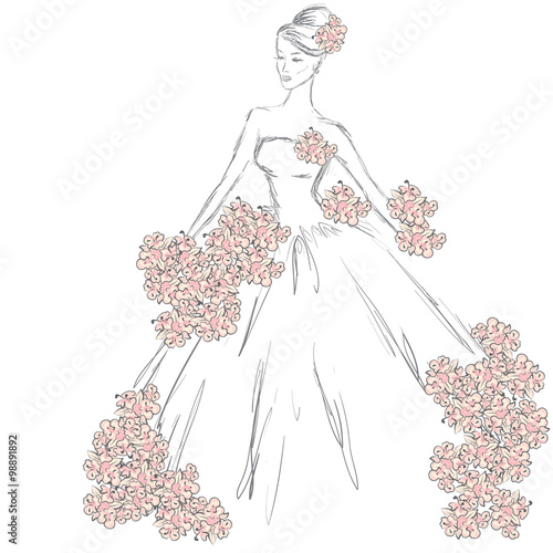 Fashion Sketch A Girl In A Dress Vector Girl In A Dress