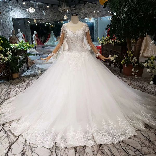 2019 Newest Luxury Style Wedding Dress Long Illusion Sleeve Lace