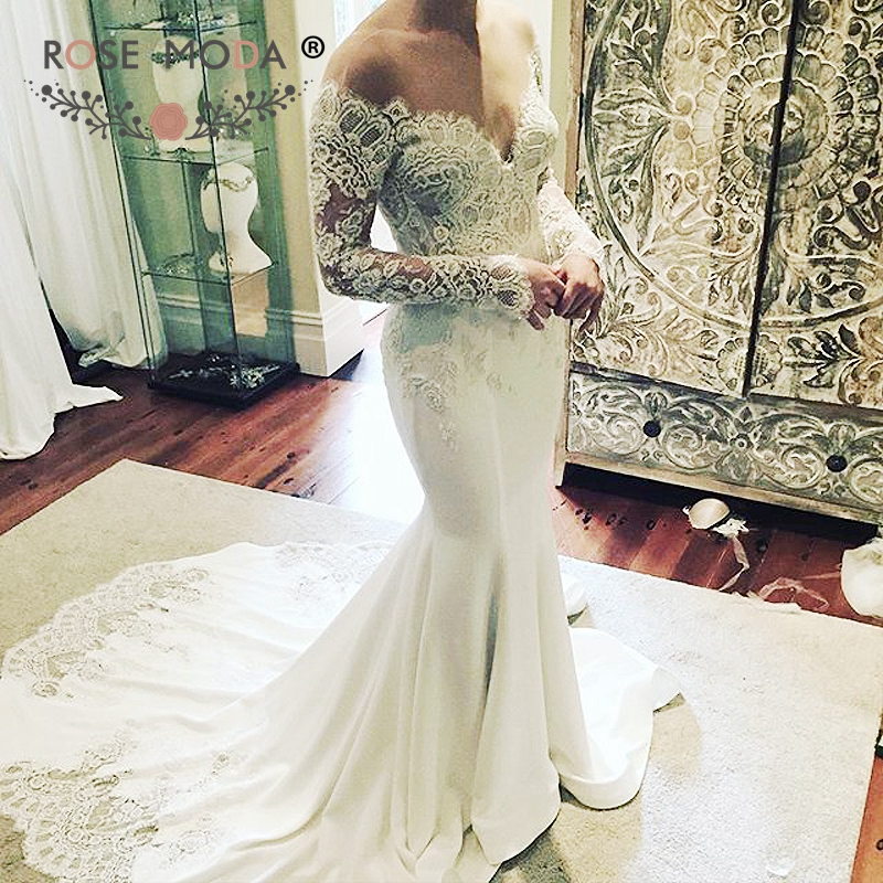 Rose Moda Sheer O Neck Long Sleeves French Lace Mermaid Wedding