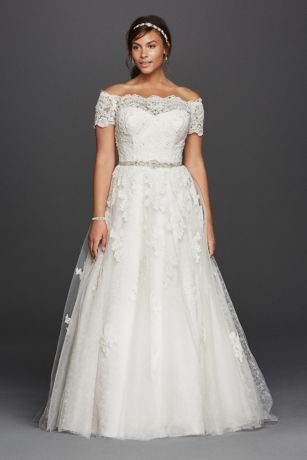 Jewel Scalloped Sleeve Plus Size Wedding Dress David S Bridal