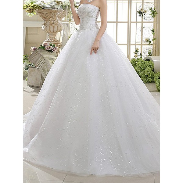 White Strapless Beading Ball Gown Plus Size Dress For Wedding Dp