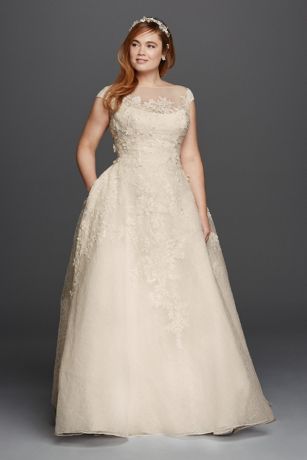 Oleg Cassini Cap Sleeve Plus Size Wedding Dress David S Bridal