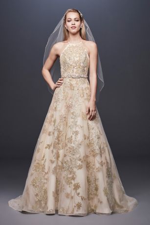 As Is Tulle Allover Gold Lace Wedding Dress David S Bridal