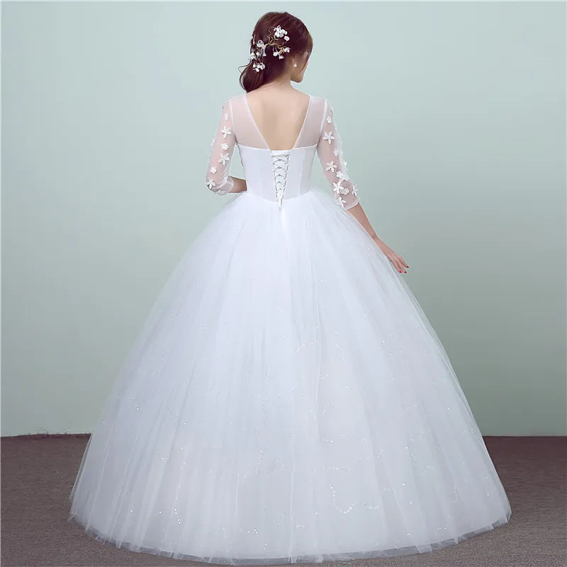 Wedding Dress Lace V Neck Korean Style 3 4 Long Sleeve Simple