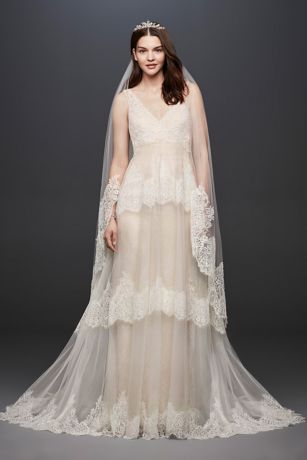 Banded Eyelash Lace Layered Wedding Dress David S Bridal