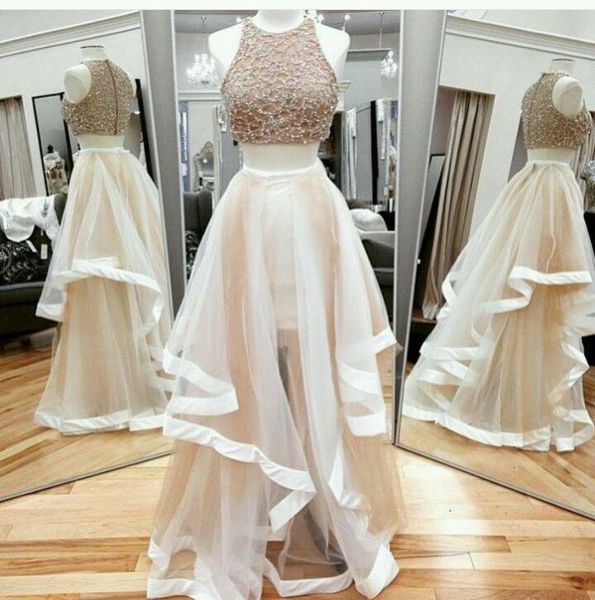 Two Pieces Champagne Prom Dresses Formal Prom Gowns Occasion