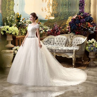 2018 New Style Long Tail Wedding Dress Gown Slim Big Size Female