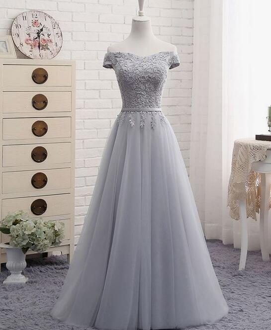 Grey Long Lace Prom Dresses Grey Bridesmaid Dresses Wedding