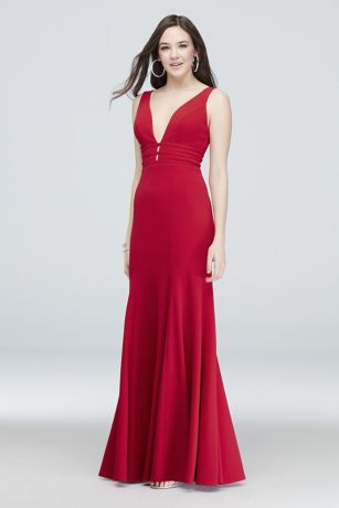 Stretch Neoprene Plunging V Neck Dress David S Bridal