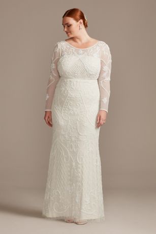 Allover Scroll Beaded Plus Size Long Sleeve Gown David S Bridal