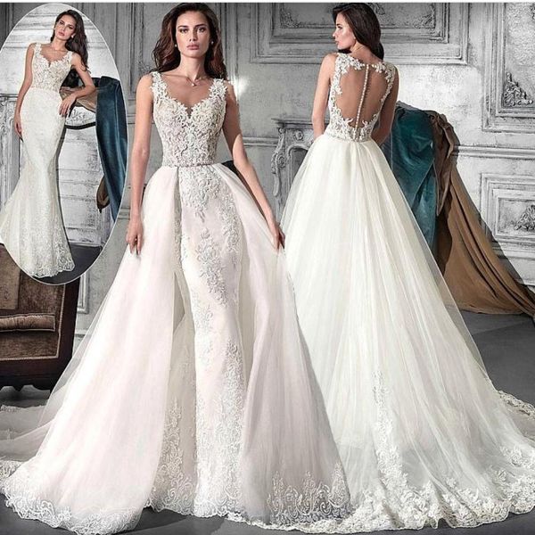 2019 Vintage Lace Mermaid Wedding Dresses Long Sleeves Detachable